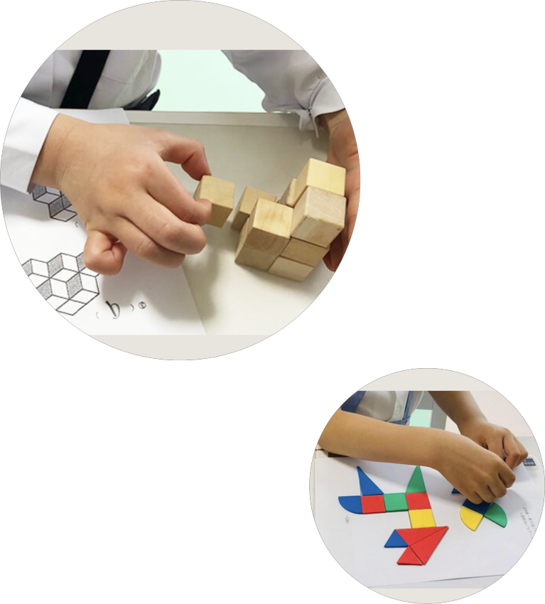 位置関係や立体的な感覚をとらえる力を育みます。図形や運動、さまざまな学びの基礎につながる大切な力です。